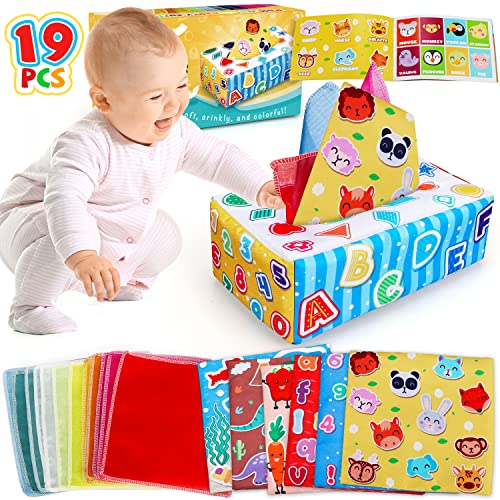 Kuango My First Baby Tissue Box Toys Soft Stuffed Crinkle Montessori Toys For Babies 6 12 Months Colorful Juggling Rainbow Dance Scarves For Newborn Infant Sensory Toys 0 3 6 9 Months